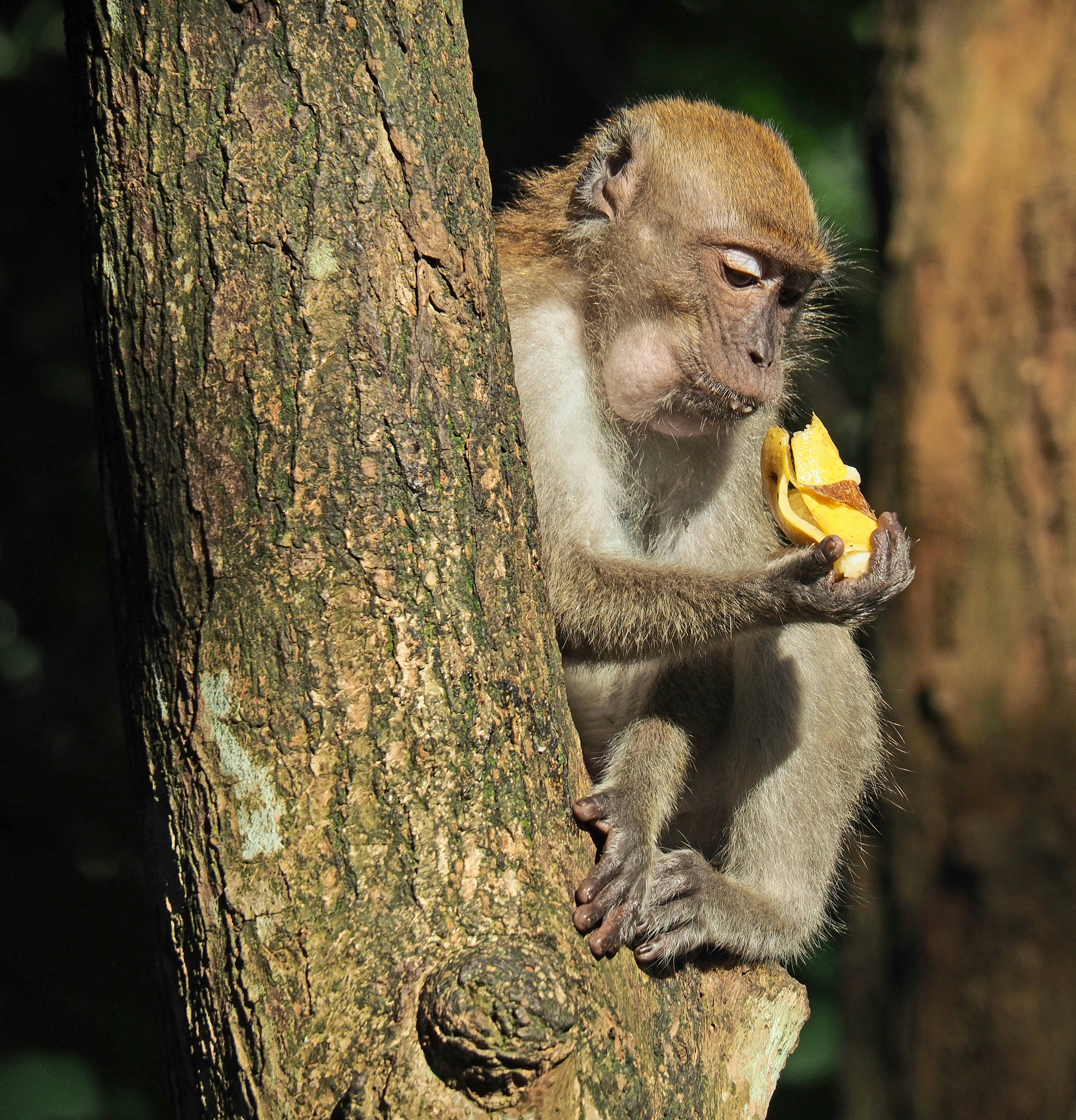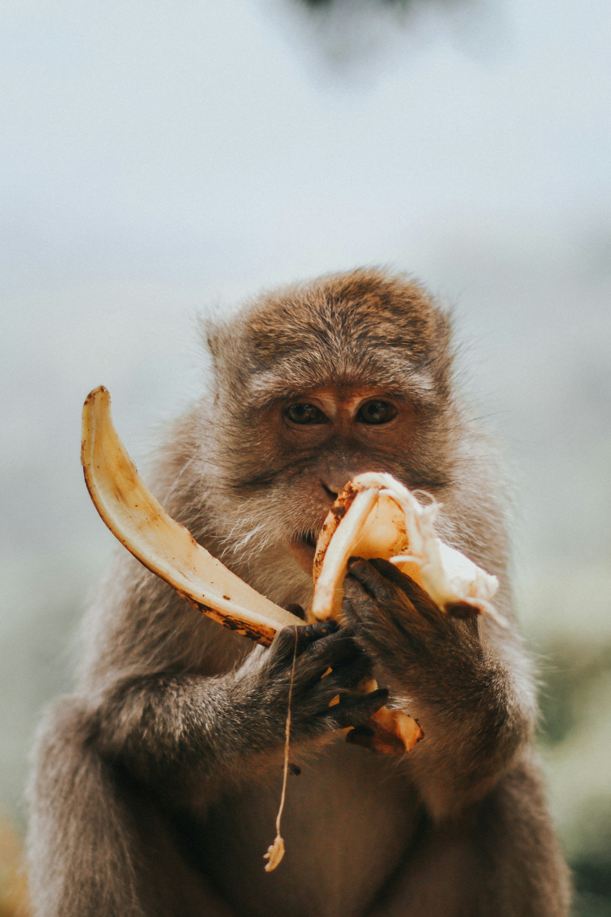 Sitting on the street in india. Watch monkeyboo peel and eat a delicious banana while he tells you how good it tastes. Monkeys aren't evolved to eat foods that are this sugary and as easily absorbed. Capuchin monkey boo eats an old mushy banana! Capuchin monkey eating a banana.